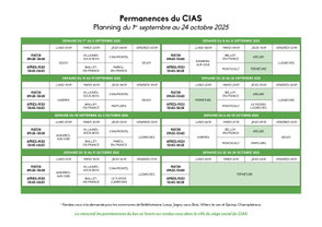 Informations municipales · 21. août 2025 Permanence CIAS (Planning) Planning du service public itinérant (septembre-octobre) 2025-09-01 au 2025-10-24 - Planning CIAS Document Adobe Acrobat 4.9 MB Télécharger tagPlaceholderCatégories :